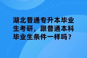 湖北普通专升本毕业生考研,跟普通本科毕业生条件一样吗?