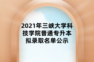 以上就是2021年三峡大学科技学院普通专升本拟录取名单公示了,没有在拟录取名单上的同学可以通过成考或者是自考来进行专升本。