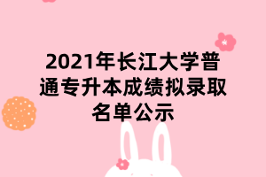 根据《省教育厅关于做好2021年湖北省普通高等学校专升本工作的通知》(鄂教高函[2021]8号)精神,依据《长江大学2021年普通专升本招生简章》工作安排,经招办网上成绩公布、考生查询成绩、考生和考试中心复核成绩、考试中心和招办审定资格和成绩、报学校普通本科招生工作领导小组审批,长江大学拟录取300名考生,其中:普通类考生232人,专项计划考生38人,退役大学生士兵30人。