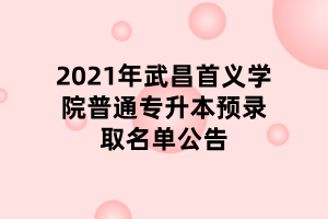 2021年武昌首义学院普通专升本预录取名单公告