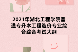 以下是湖北专升本网小编为大家整理的2021年湖北工程学院普通专升本工程造价专业综合综合考试大纲,在专升本考试中想要报考湖北工程学院的考生可以了解一下。