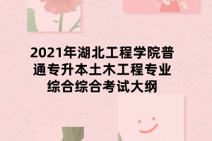 以下是湖北专升本网小编为大家整理的2021年湖北工程学院普通专升本土木工程专业综合综合考试大纲,在专升本考试中想要报考湖北工程学院的考生可以了解一下。