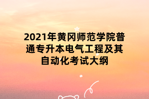 2021年黄冈师范学院普通专升本电气工程及其自动化考试大纲