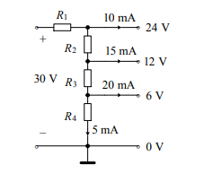 2、电路如图所示,则电阻 R1 = ____W ; R2 = ____W ; R3 = ____W ; R4 = ____W 。