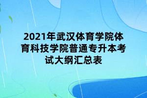 以上就是2021年武汉体育学院体育科技学院普通专升本考试大纲汇总表的全部内容了,有想要报考武汉体育科技学院的同学可以详细的了解一下。