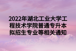 2022年湖北工业大学工程技术学院普通专升本拟招生专业等相关通知